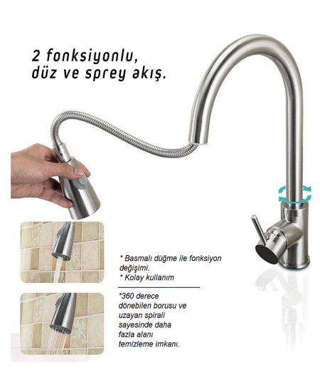 Pierre Cardin Inox Kibris Spiral Kithcen Faucet